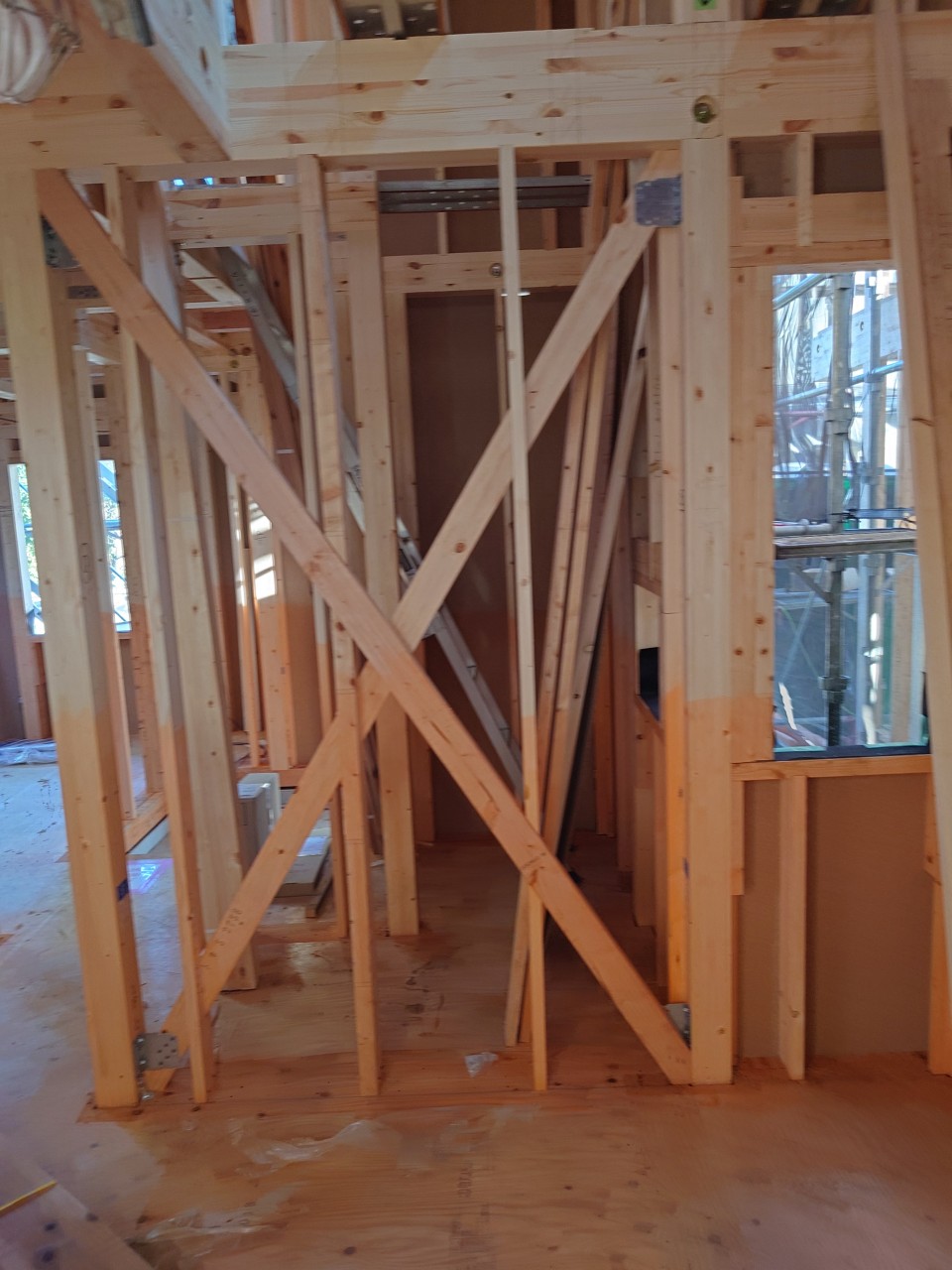 金物や筋交いなど耐力壁の取付けが完了したので第三者機関による構造検査を行いました。