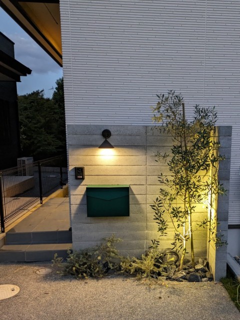↑外構工事がオシャレに映える夕刻の写真