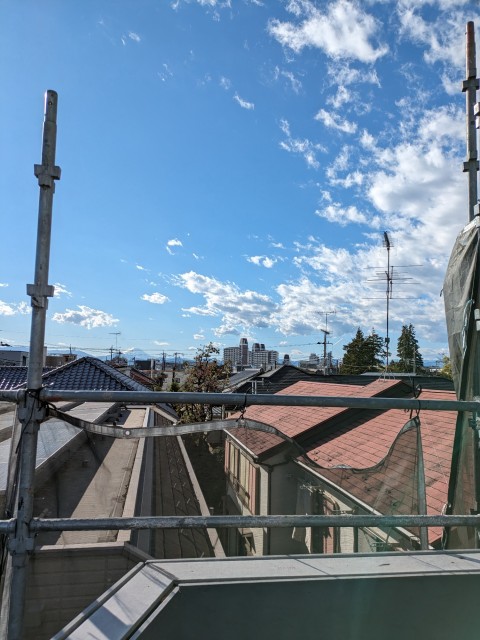↓足場から見える9月の空はまだ夏の面影が残る空ですね。