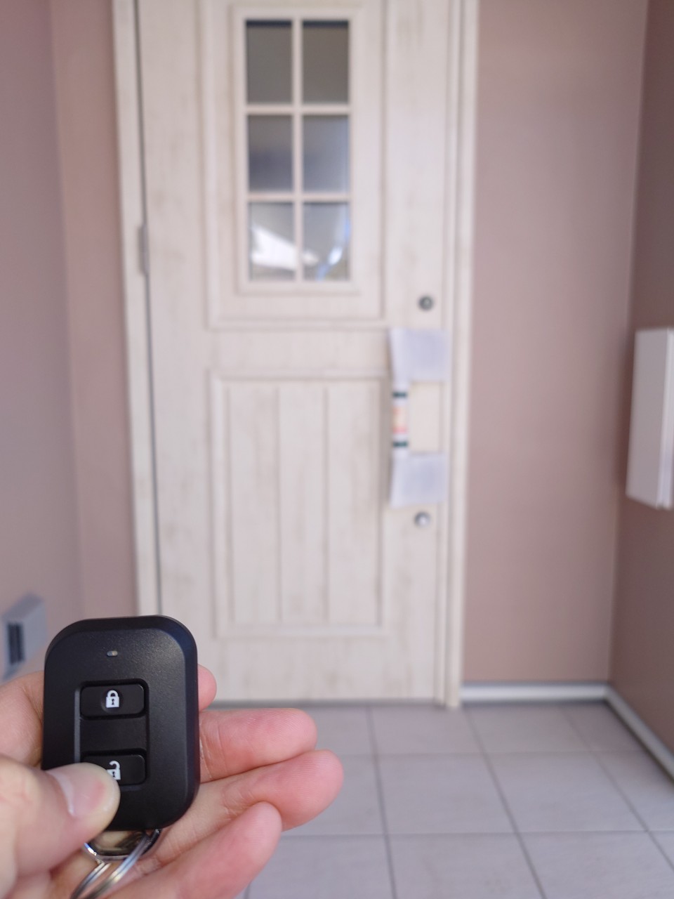 電動式の玄関ドアで、リモコンひとつで施解錠からドアの開閉までできる
