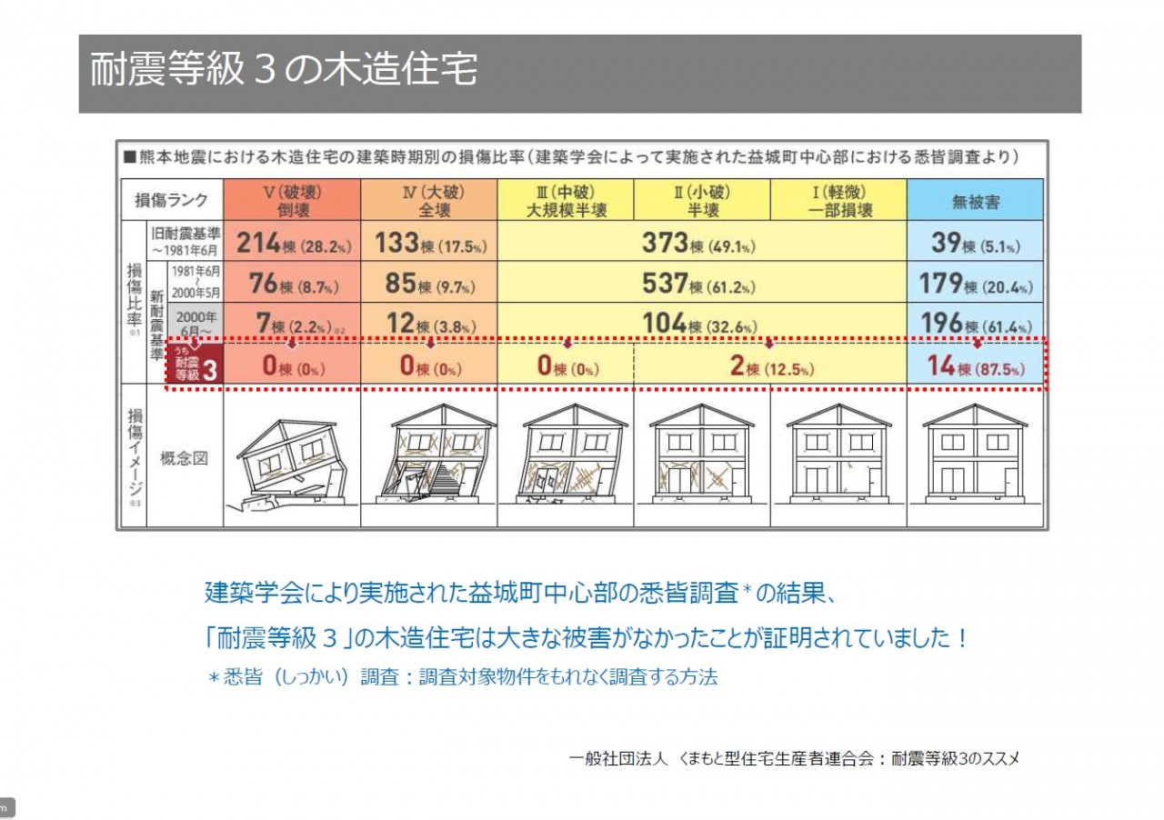 熊本の地震でも耐震等級3の家の強さが証明されています。