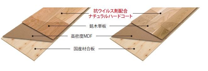 アイディールの標準と同じ12mmであれば12mmがまるごと1個体の「木」の厚さになっている材料が無垢材です。