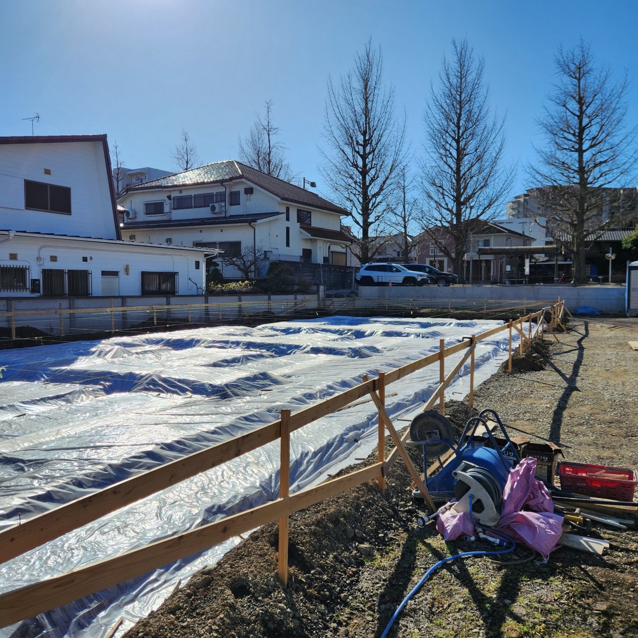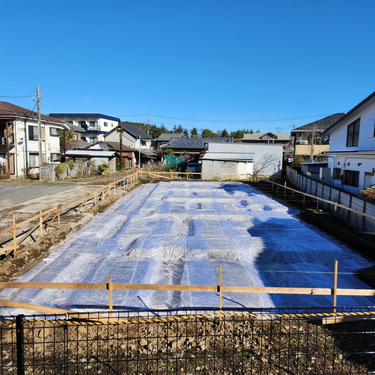 地中の湿気が上がってこない様に防湿シートを地面に施工し、