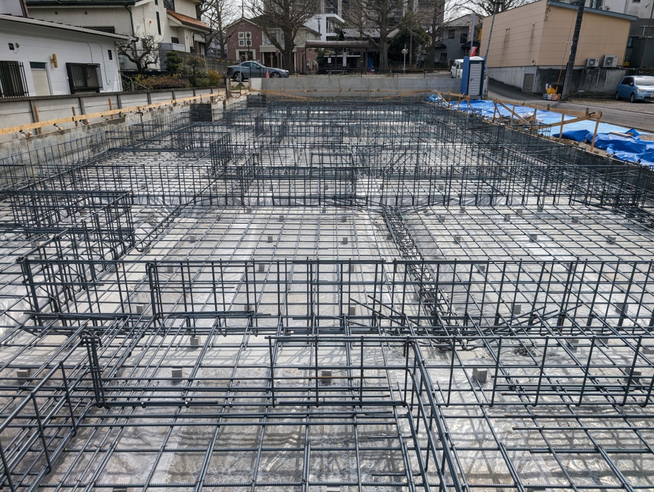 3/31の時点ではコンクリートの1回目の打設が終わり、2回目の打設に向けて準備をしています。