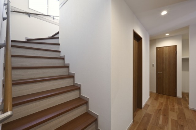 約45坪の広いお宅で、広くとった階段が高級感があります。