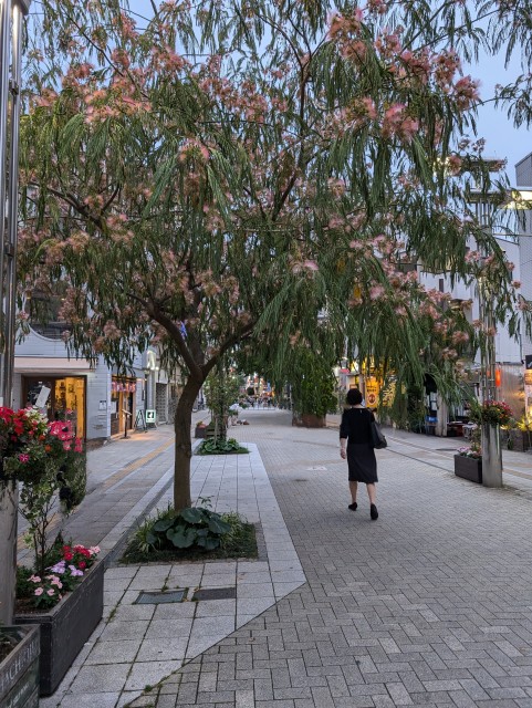 ねむの木があるのですが、ちょうど花が咲いていて、この木の近くを通るととても良い香りがします。いい香りをかぐとその瞬間とてもハッピーな気分になります。