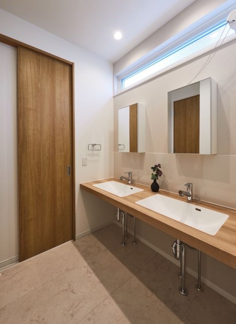 アイカの手洗いカウンターは弊社のお客様にも人気で、来月お引渡しのもう一組のお客様邸でも設置予定ですし、4月にお引渡しをしたお客様邸にも設置しました。