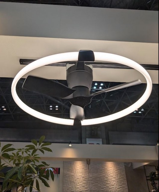 ファンに近づくと、風量あるようで涼しいくらいでした。もちろん夏、冬にあわせて上向き廻り、下向き廻りになり、操作や明かりの調色はスマホのアプリでするようです。もともと外国の製品らしく、取り扱いメーカーさんが日本向けの電圧で作り直したとのこと。なかなかステキでした!