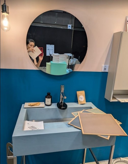 モルタル調の塗装で屋外にも置ける仕上げのシンクだそうです。質感や色展開がとってもかわいいな、と思いました!