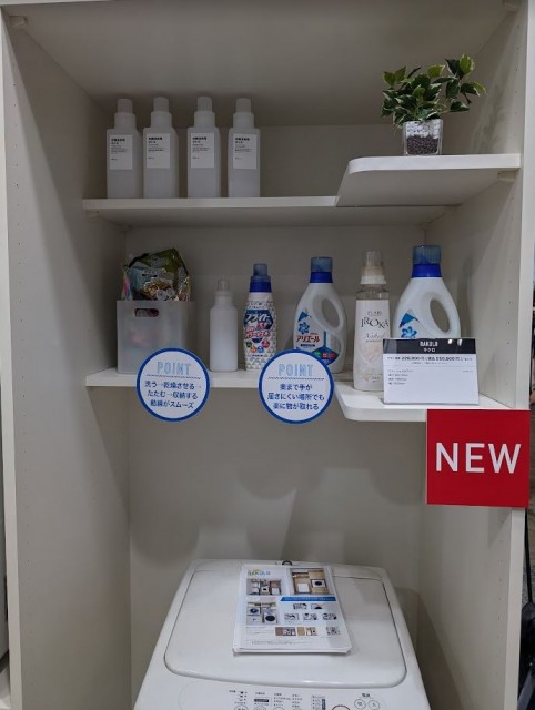 新商品の洗濯機上の棚板もL型がでたのね!使いやすそう!と思いましたし