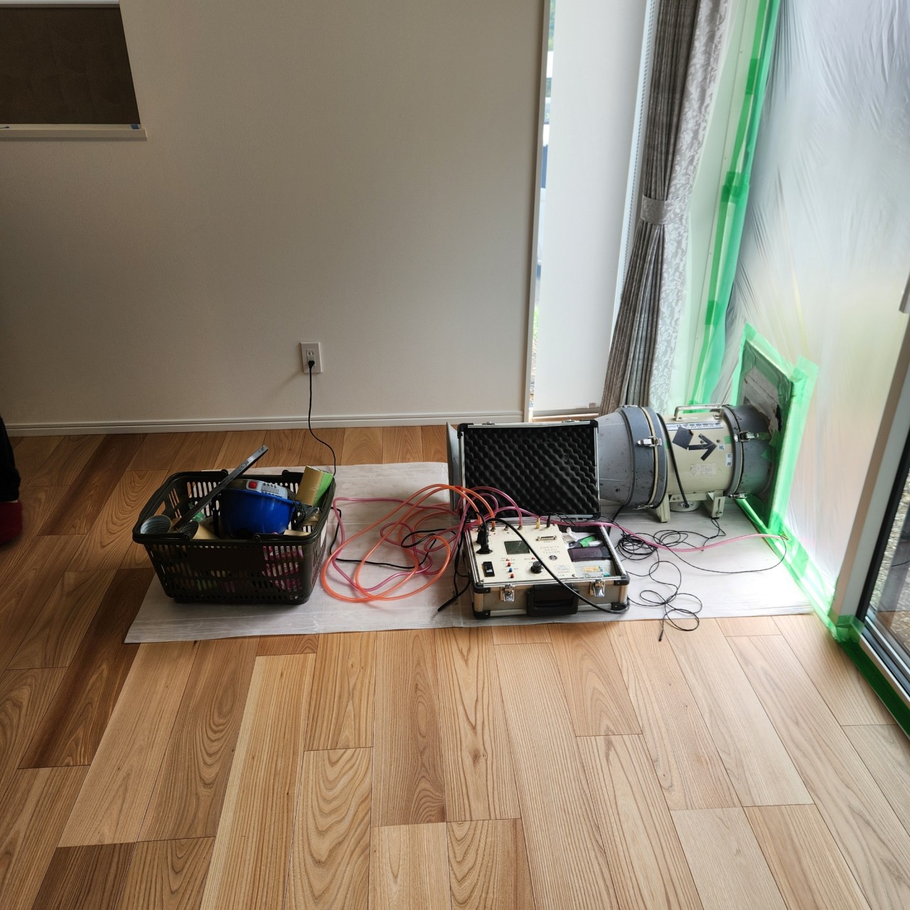まずは、完成時の気密測定です。