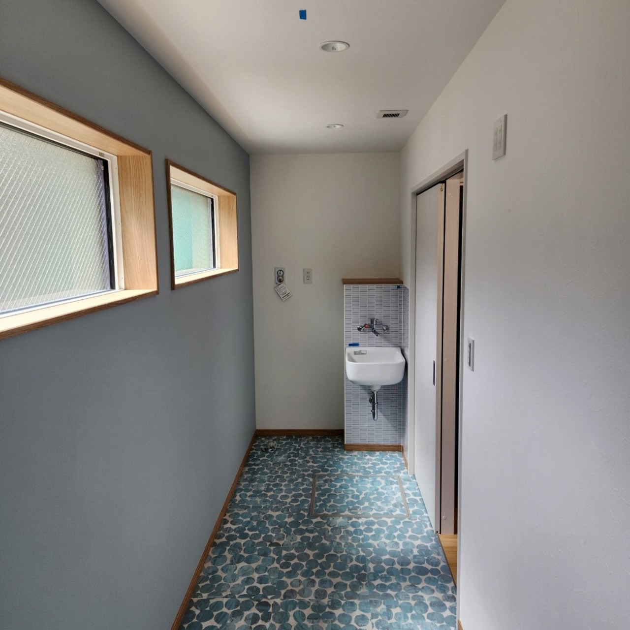ドアを開けておけば冷気が入りそうな1階の西側ランドリールーム