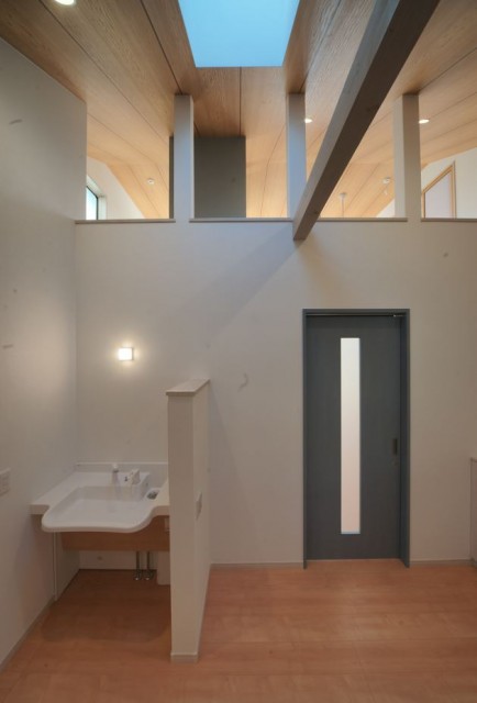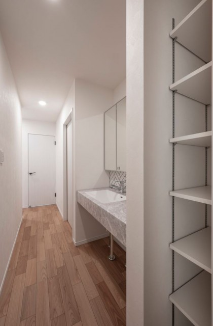 下の写真たちは、廊下に洗面台スペースをきっちり落としこんだ事例です。