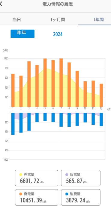 1年のデータを見ると、とてもお得に電力を使うことができたことがわります。
