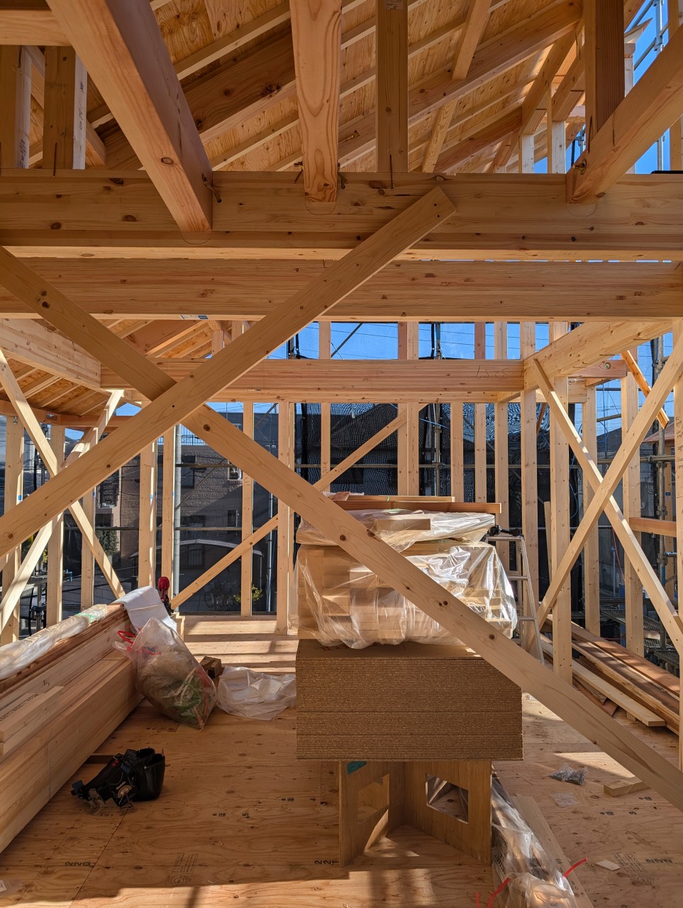 今日は、先日上棟した「板橋の家」に行ってきました。
