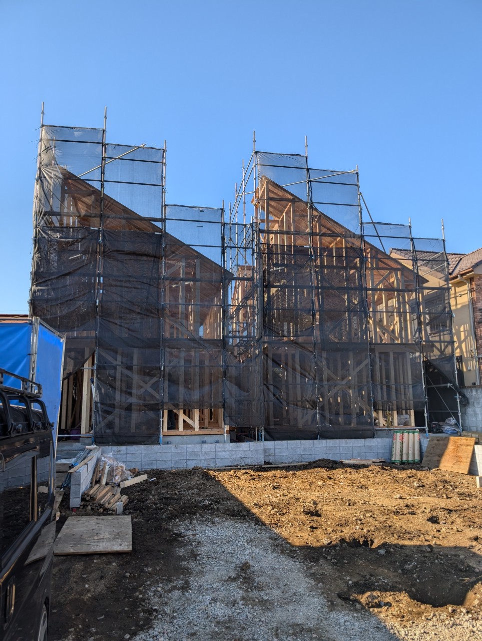 上棟後の写真 2棟建ちました。