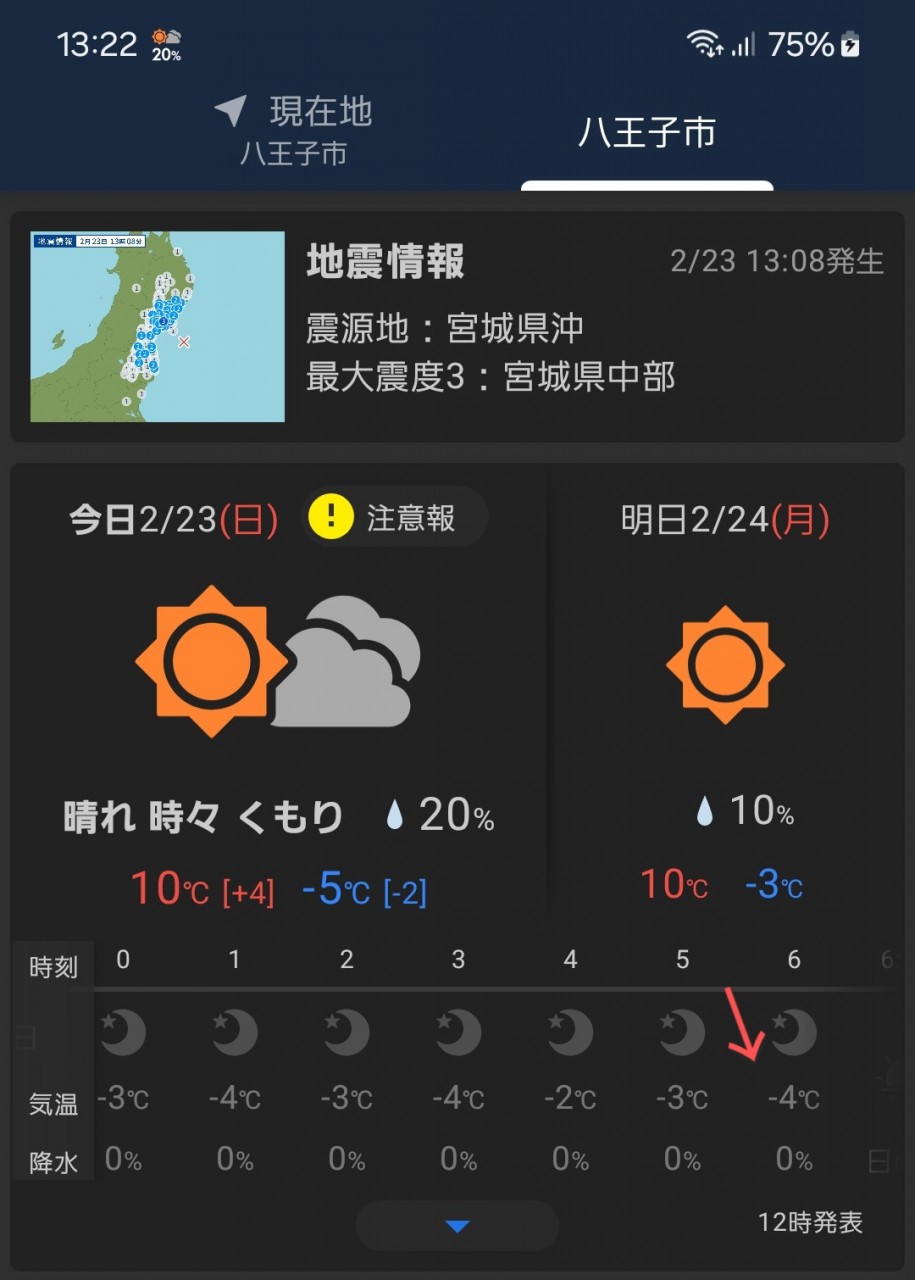 参考までに八王子市の本日の朝、6時頃はマイナス4度だったようです。