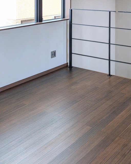 こちらのお宅は落ち着いた茶系をチョイスされていますが、色違いでは昨年お引渡しした注文住宅などでも同じ床を入れました。