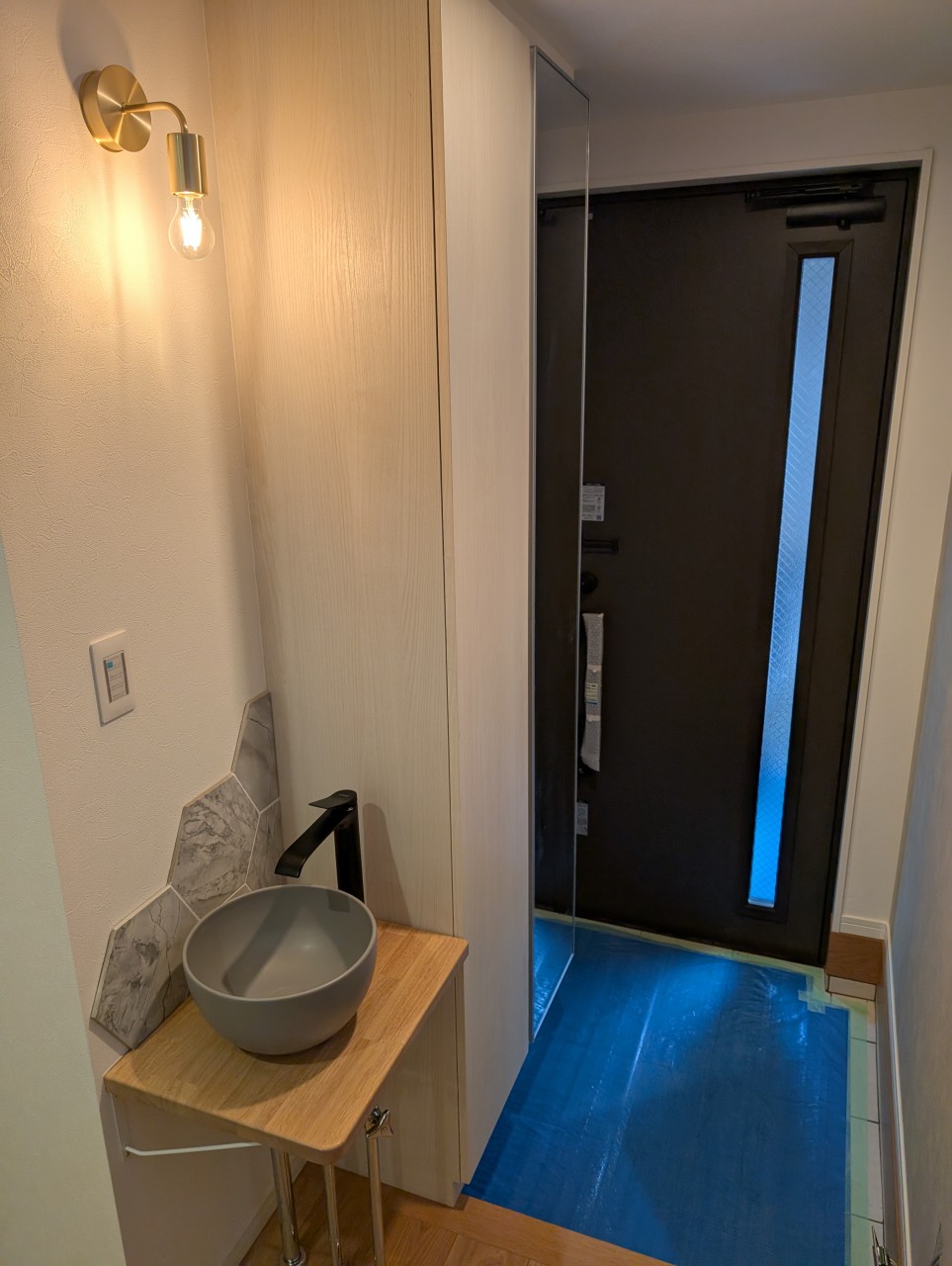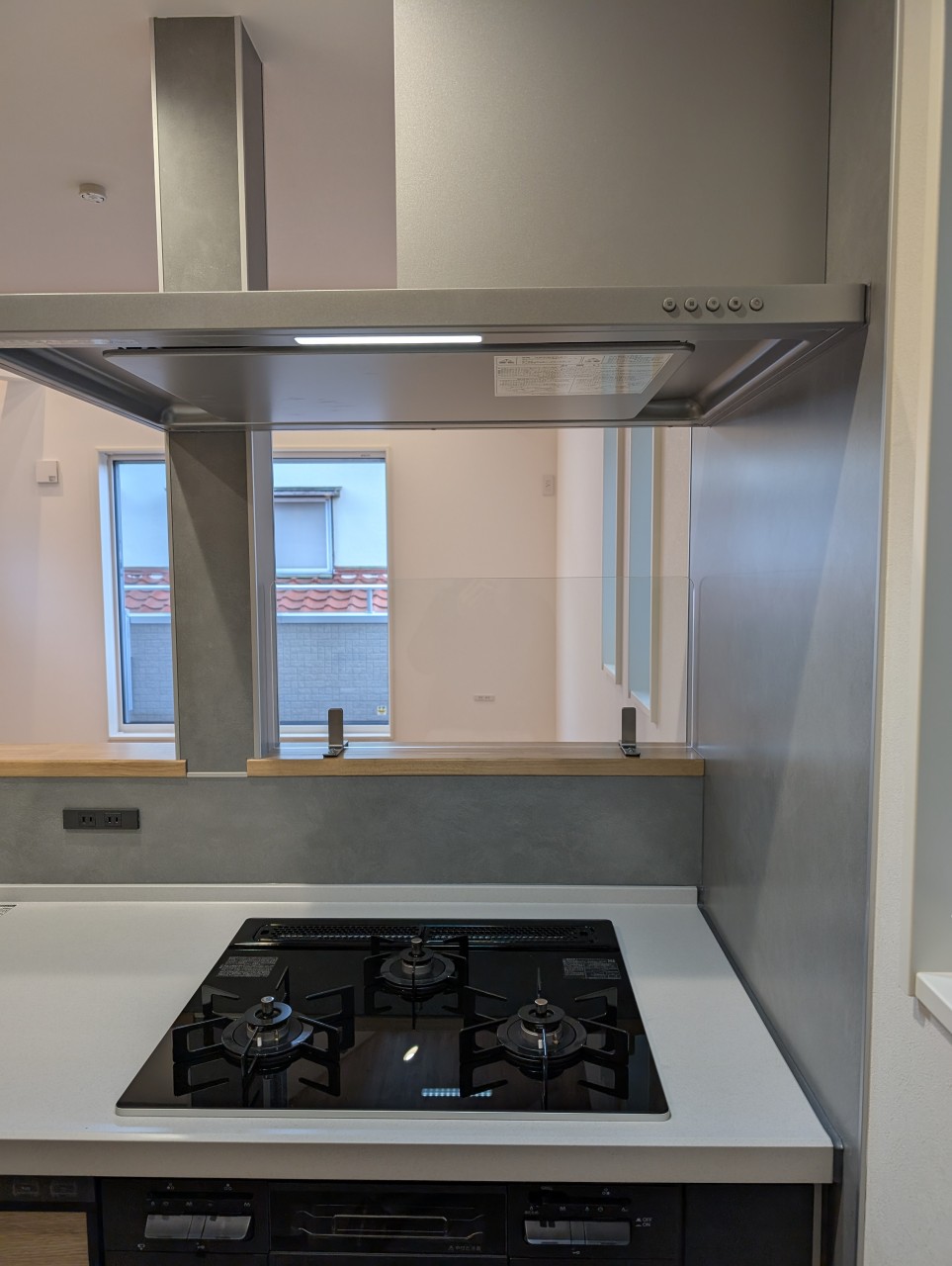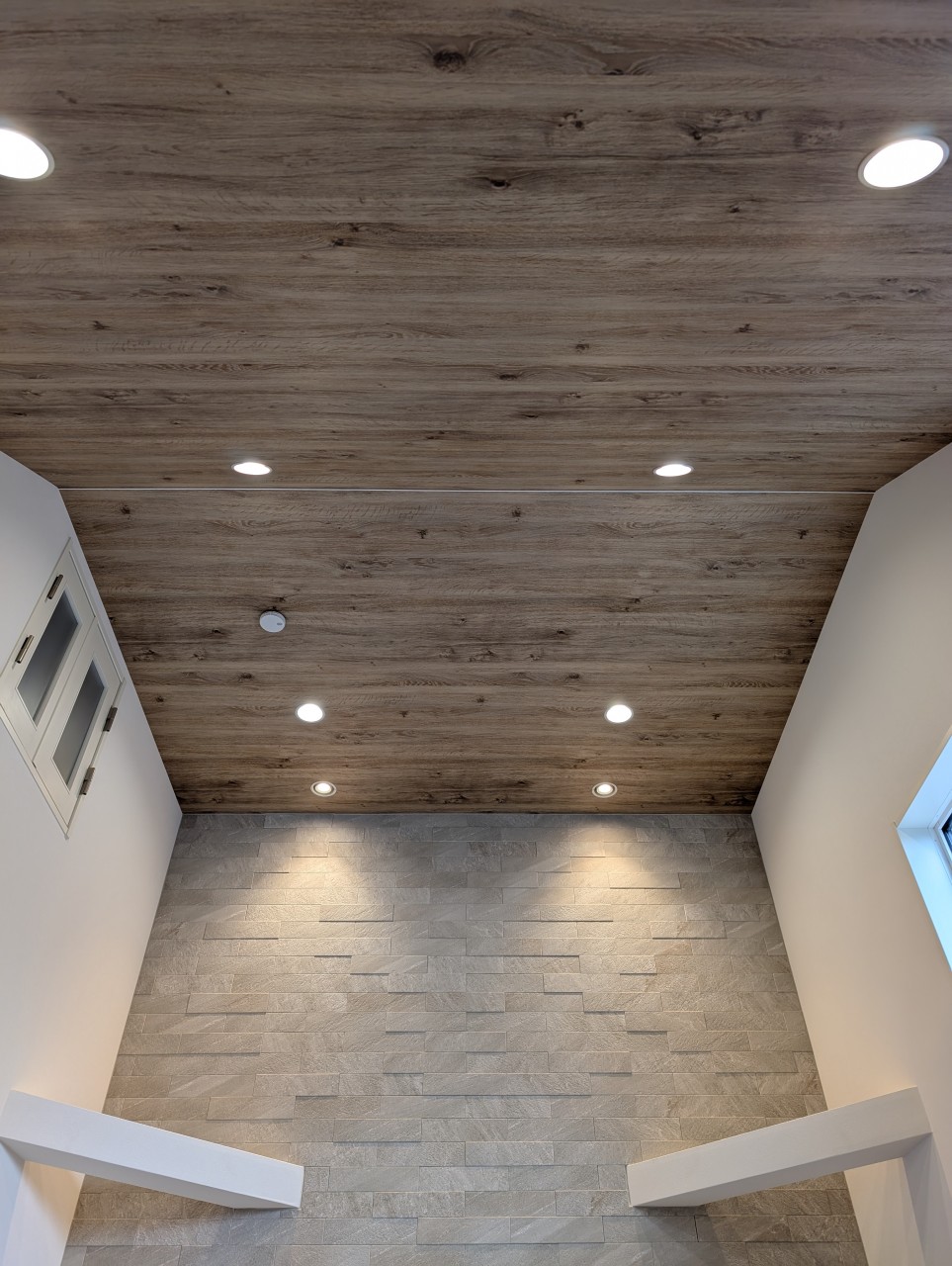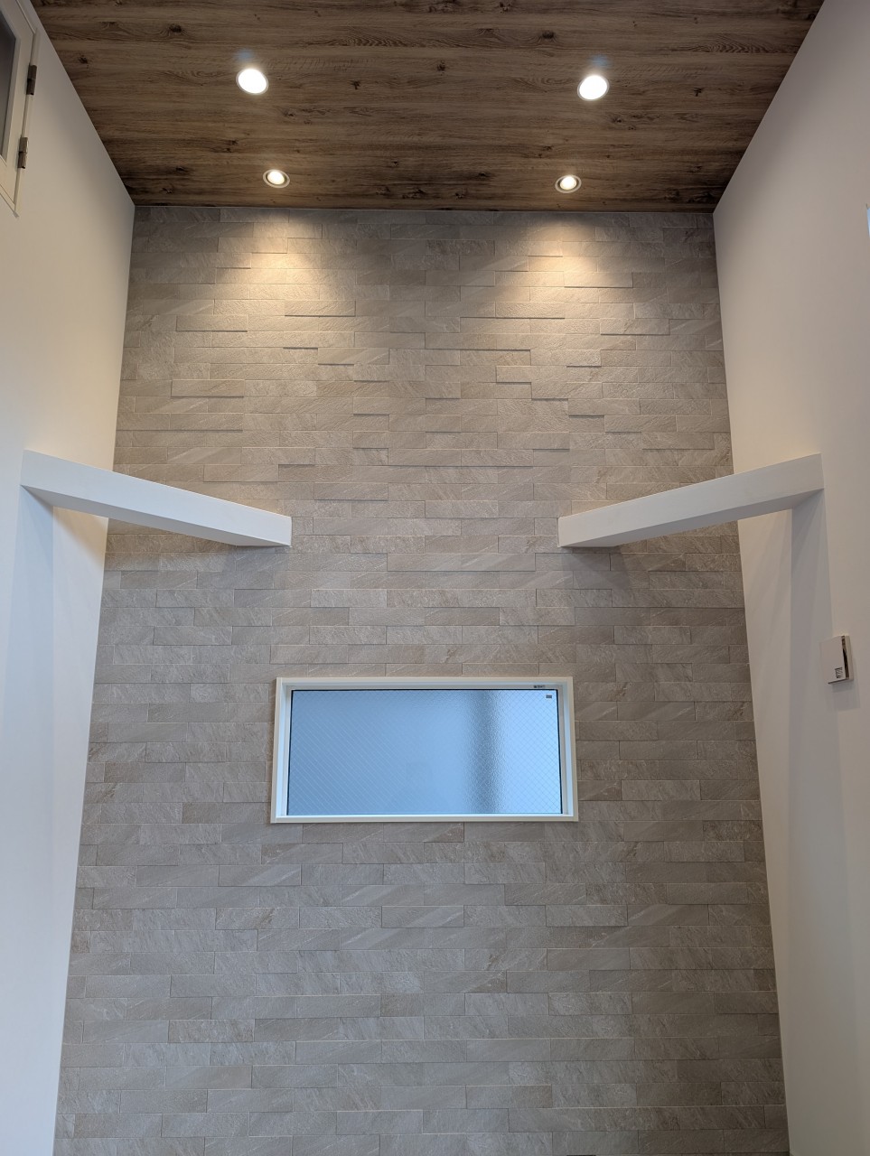 全面に張られたタイルはエコカラット 「ラフクォーツ ライトグレー色」