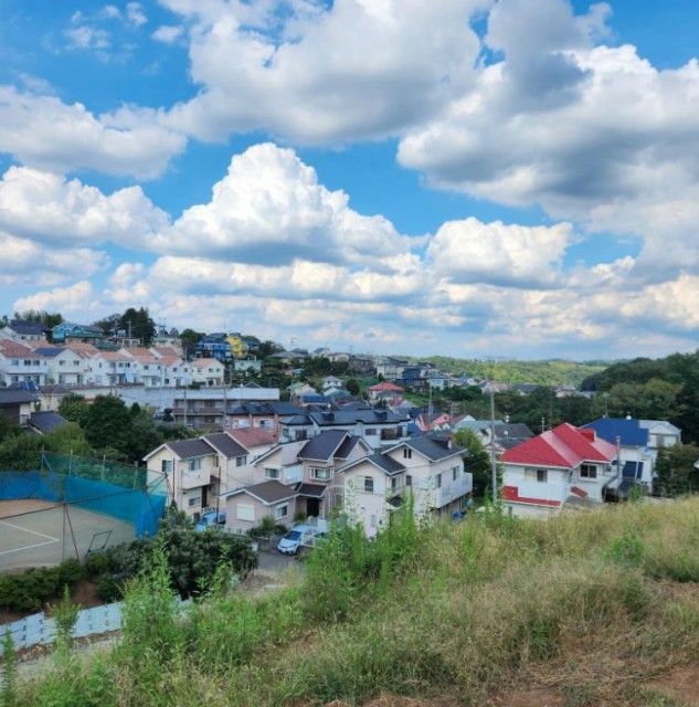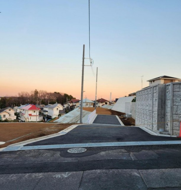 こちらは高台で、何と言っても景色がよく、気持ちがいいです。造成が終わったころの写真です。造成途中のまだ空が夏のような9月の見晴らしと造成完了後の秋の夕暮れの写真がこちら↓