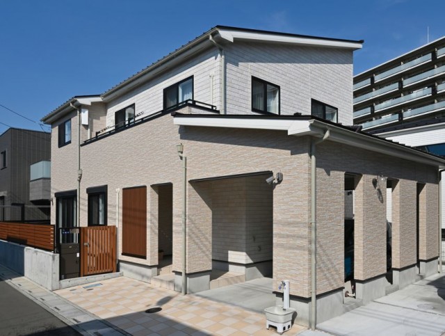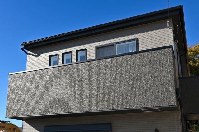 外壁の薄いグレーに品よく黄みのあるグレーを合わせたり(写真はリクシルのシャイングレー)