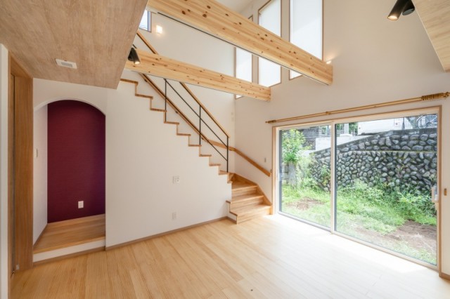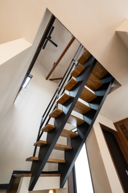 ひな壇階段以外も、蹴込みがない階段(スリット階段やストリップ階段などと呼んでいます)もよりデザイン性が高く素敵です。