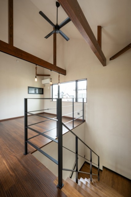 アイディールの家は高気密高断熱なので、壁がオープンな分、より冷暖房の効果が家中に広がります。室内環境も見た目にもオープンか手すりはおススメです!
