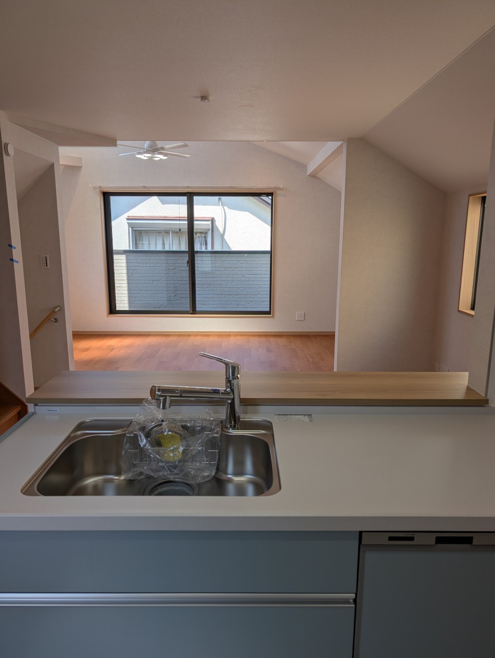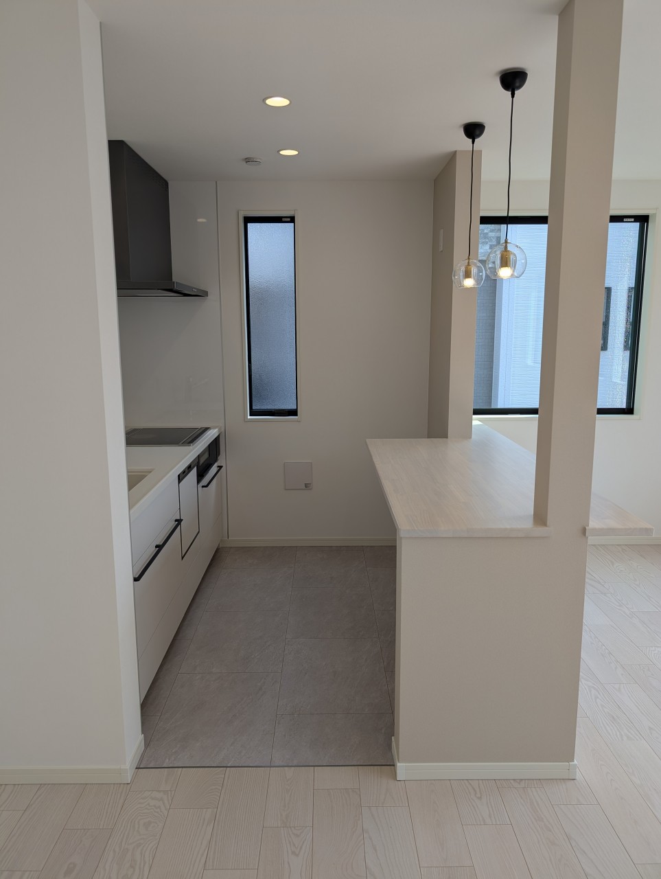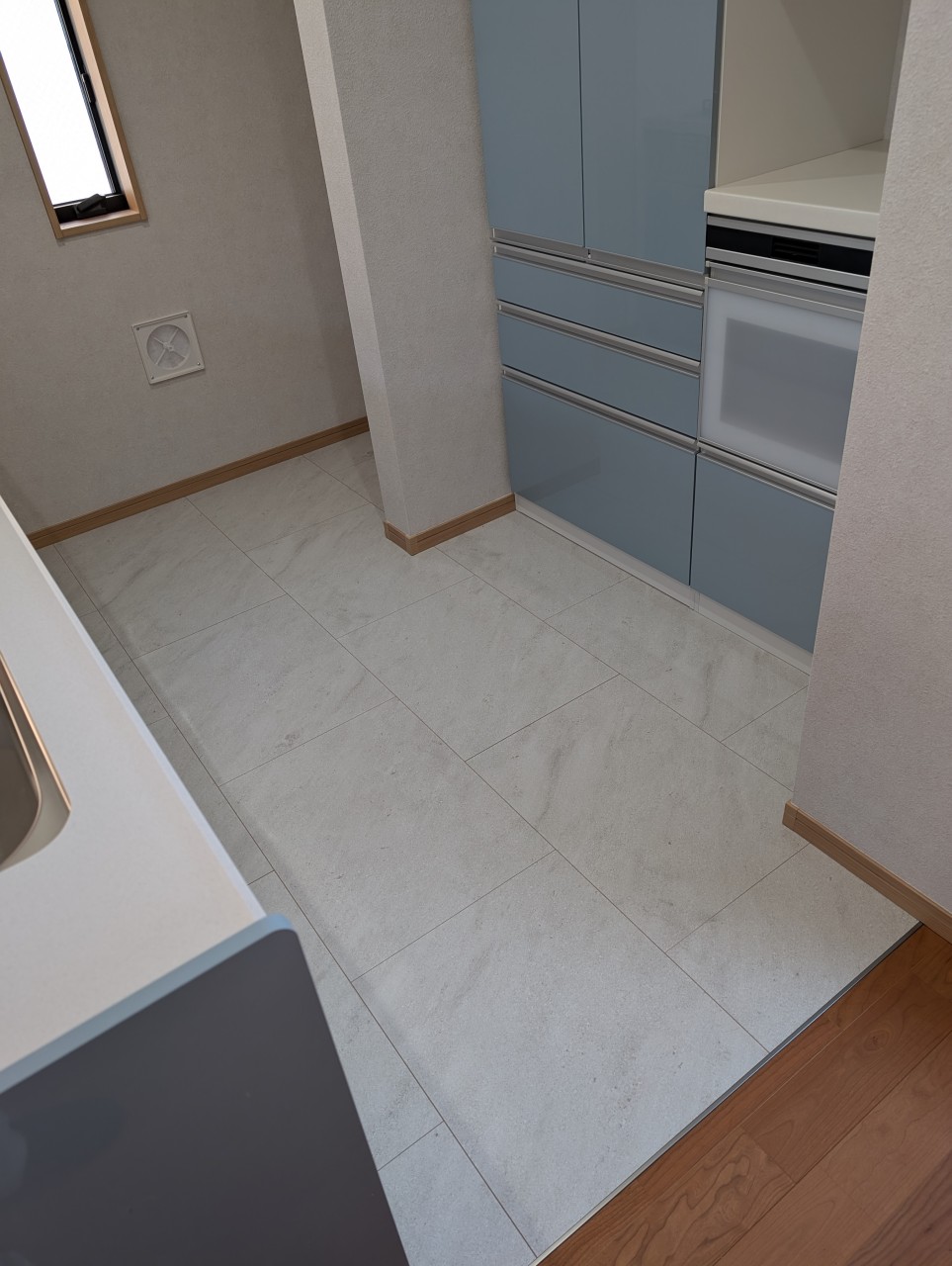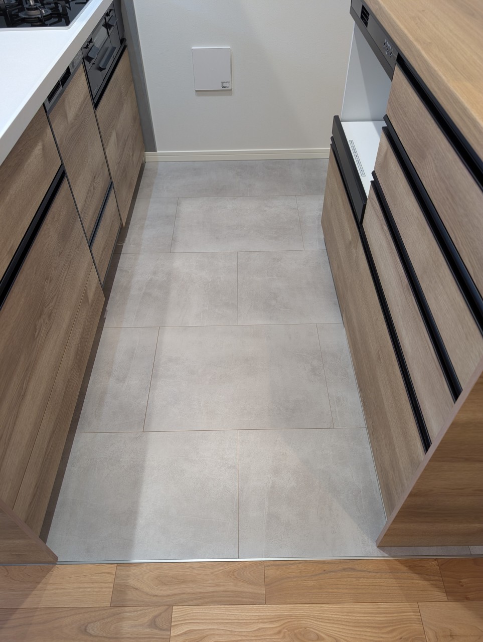 キッチンの床だけフロアを空間の雰囲気がガラリと変わります。
