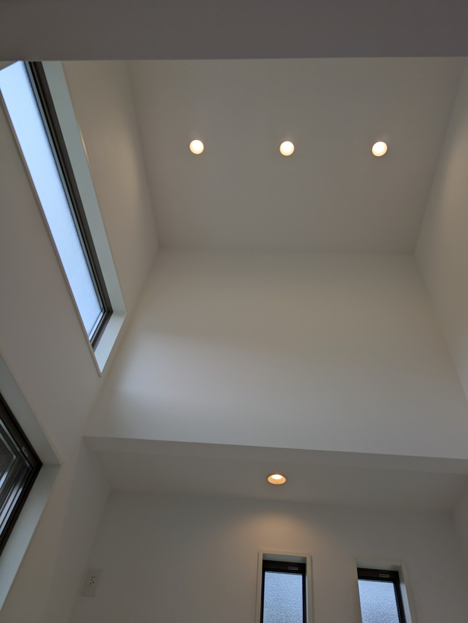 階段はホワイトアッシュ色、フロア色と変えてアクセントに