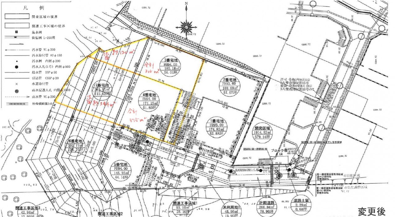 今回は、斜面ではあるものの、7番宅地を分割して、