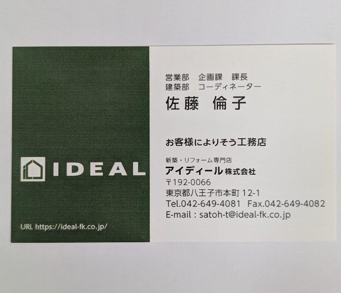 「お客様に寄り添う工務店」という文言は私の名刺にも入れています。ちなみに私たちの名刺はこんなデザイン↓(ブログで公開するのは初めてかもしれませんね)ひとこと文言は各自が伝えたいことを入れているのでそれぞれ違うことが入っていたりします。