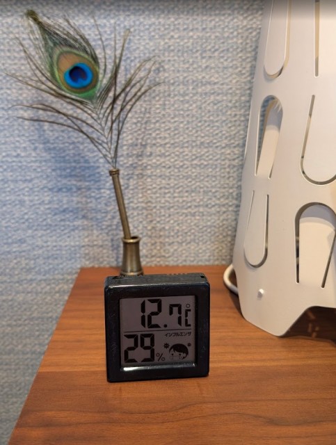 昨日の閉店時18時ころにつけていたエアコン1台を切ったあとは無暖房ですが、今朝8時半ころで1Fも2Fも13度前後の室温です。高断熱住宅の特徴である保温性を感じられます。