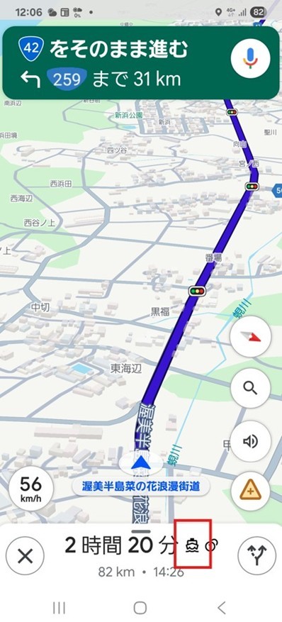 グーグルマップで目的地を設定し車で運転をしていたところ、