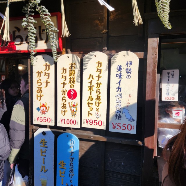 参拝が終わり帰りにおかげ横丁で食べ歩きをしながら帰路につきました。
