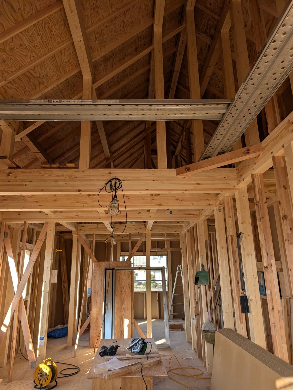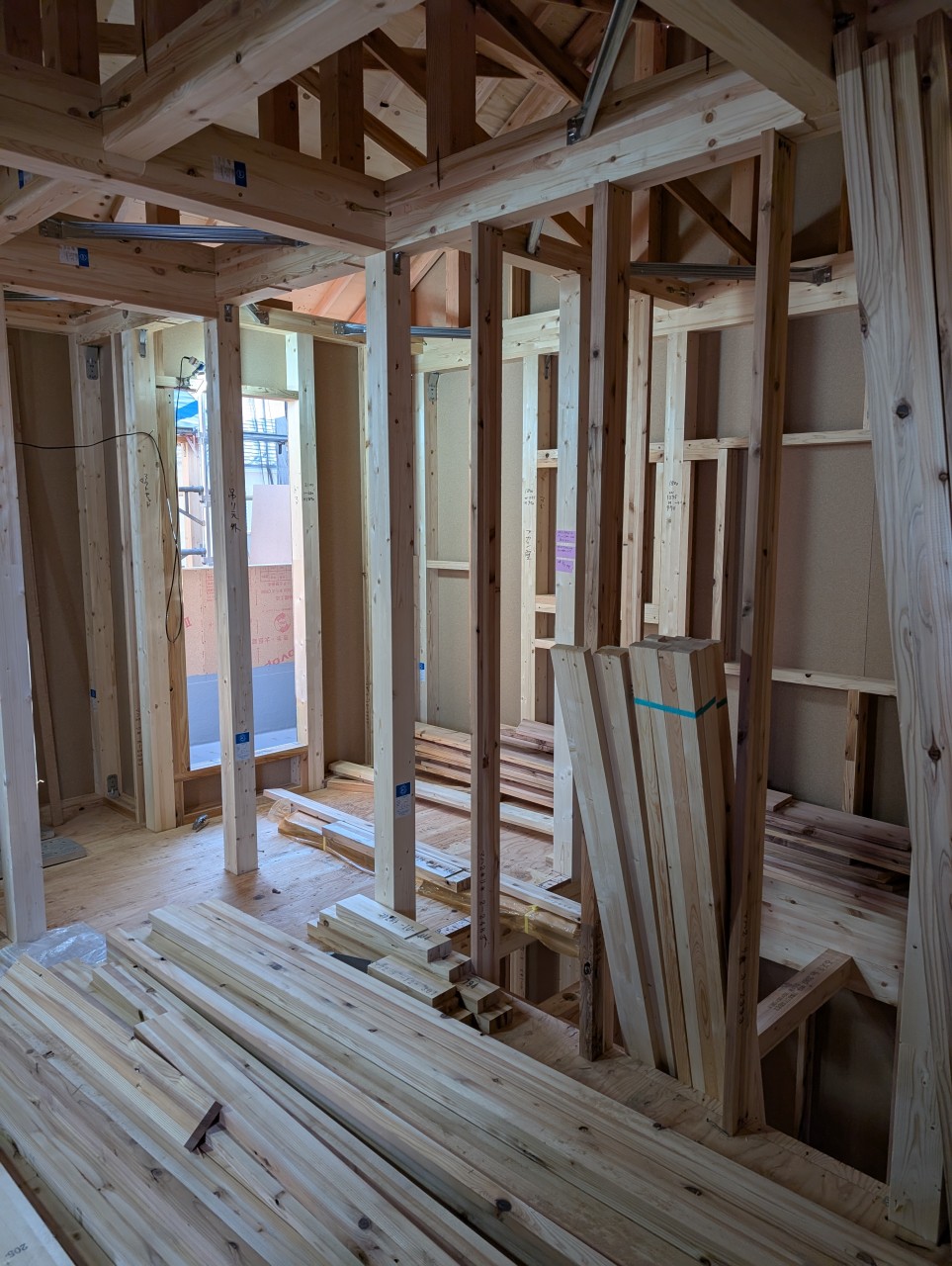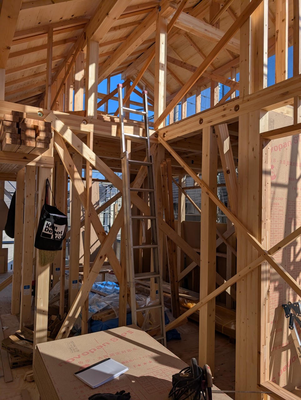 先月上棟した「西東京の家」は2棟上棟して大工さん工事中です