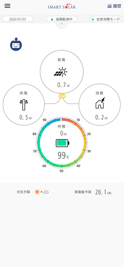 晴れの日は蓄電池にためながら売電もしてます