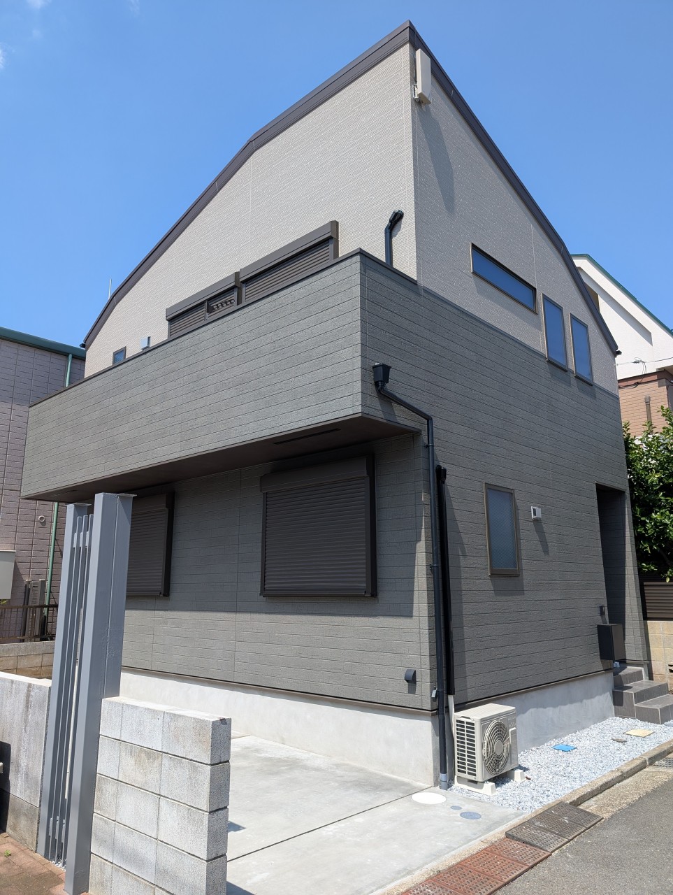 落ち着いた色使いで、シンプルながらもモダンでおしゃれな外観です