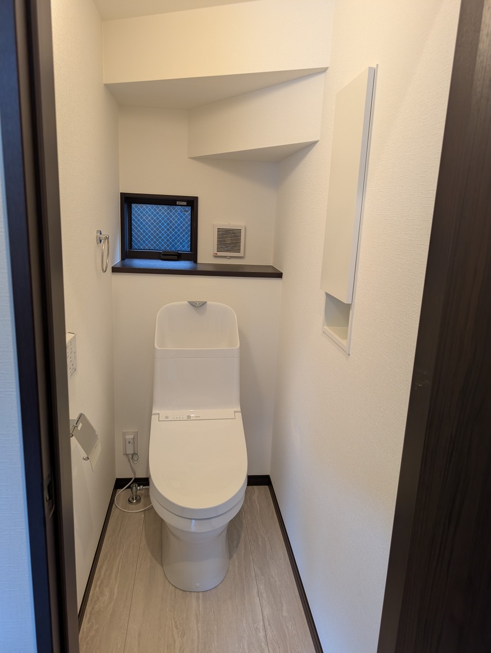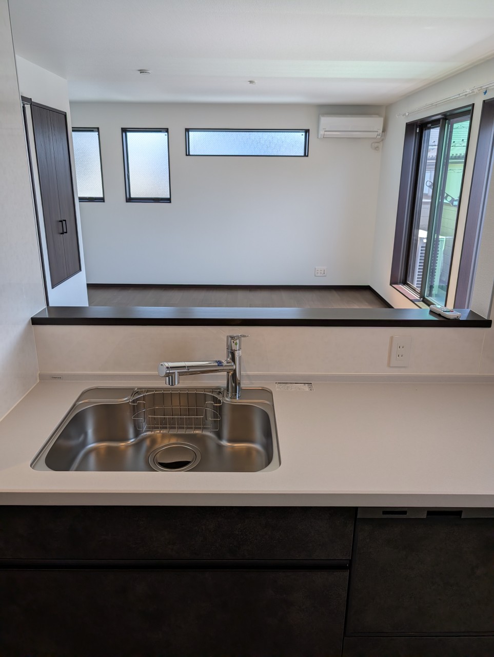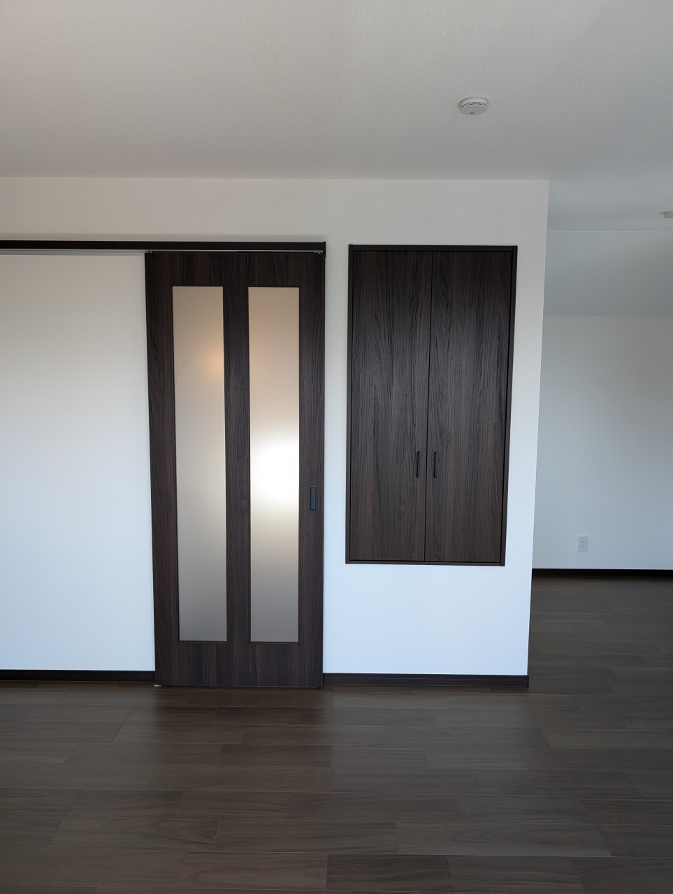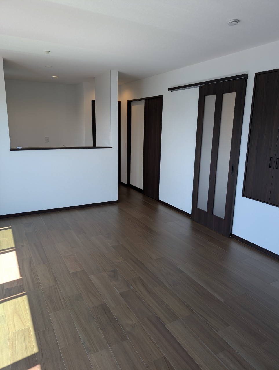 濃いブラウンのフロアと建具がモダンで落ち着いた雰囲気です