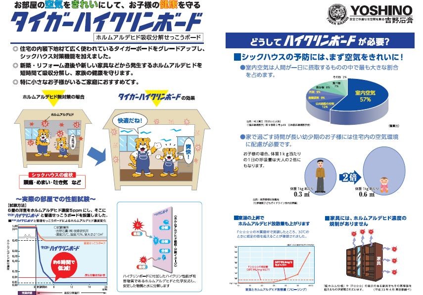 「健康」や「安心」のお住まいをご提案している弊社では、ホルムアルデヒドを吸収、分解してくれる石膏ボード「ハイクリンボード」をアイディールの注文住宅「5つ星のいえ」の仕様に関して、標準仕様で採用することにいたしました!お住まい頂く方により「健康」や「安心」をお届けできるよう、日々精進いたしますー!