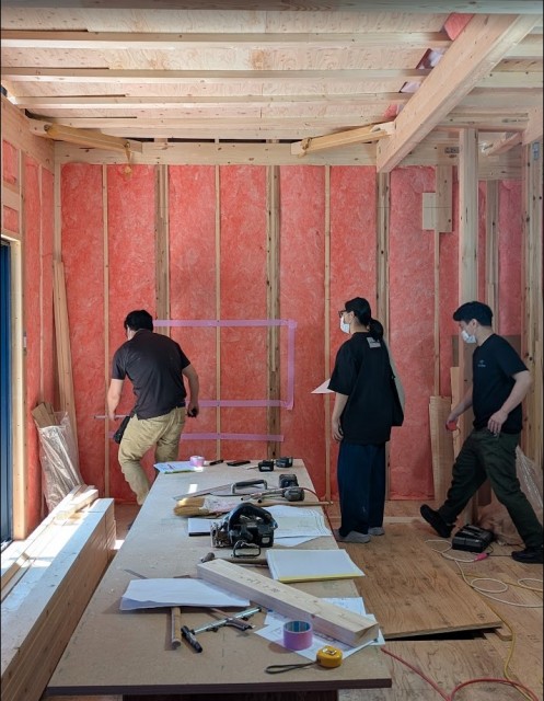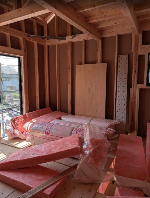 現地は断熱工事中で、電気配線の前です。