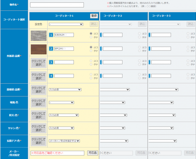 お客様からイメージのご希望を聞き取ったら、それを踏まえて、そのままイメージを伝えるか、具体的にパースに反映してほしいサイディングの品番を入力して作成をお願いします。