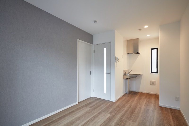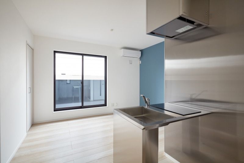 和モダンな外観、シンプルなキッチンや洗面台がおしゃれなワンルーム