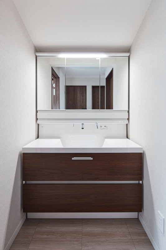 UBとランドリールームの間、2Fのホールに配置した洗面スペース