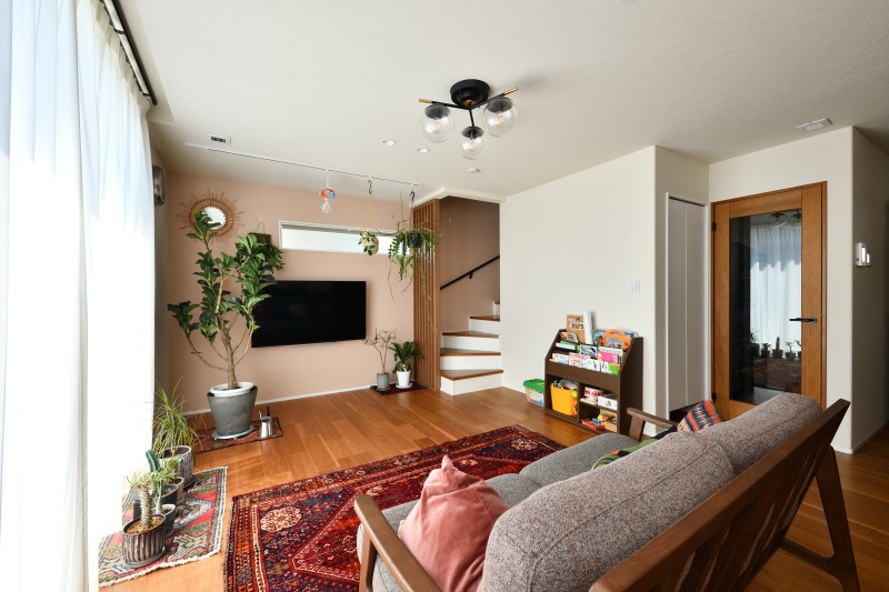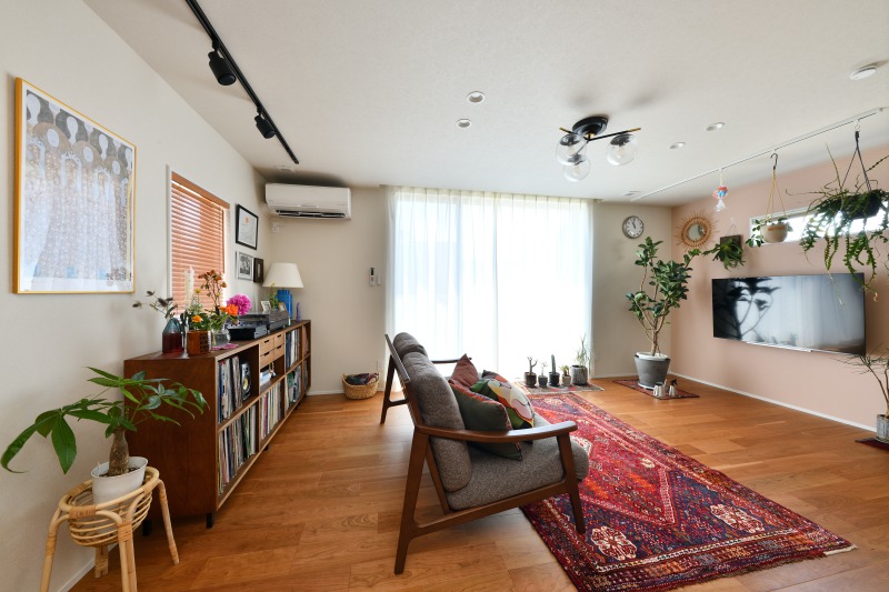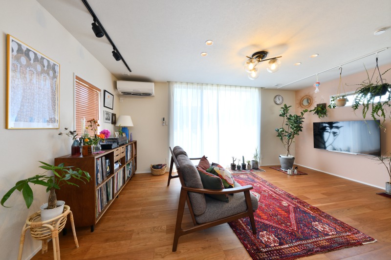おしゃれなご家族の緑あふれるリビングと素敵なインテリアにかこまれた快適な暮らし