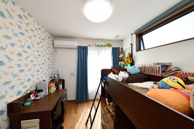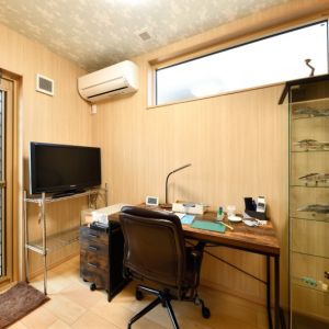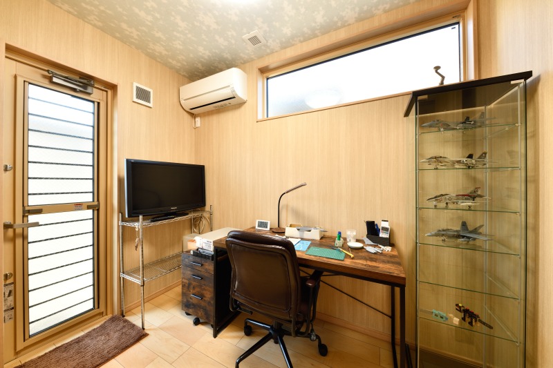 飛行機が好きなお父様の書斎スペースは空のクロスで遊び心を