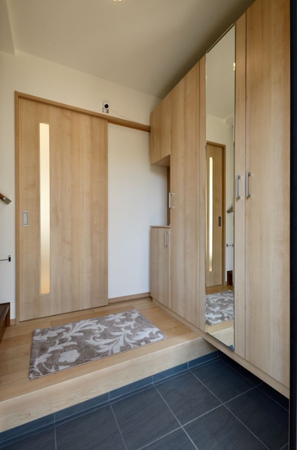 玄関は1つで1Fはご両親世帯、2Fはお施主様世帯
