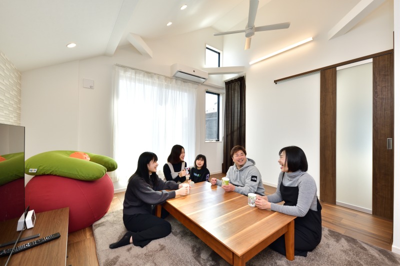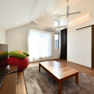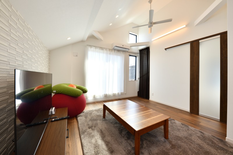 勾配天井をいかした明るい2Fリビング
