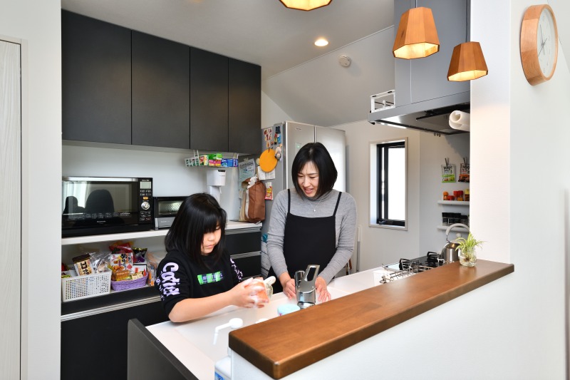 新しいキッチンでママのお手伝い