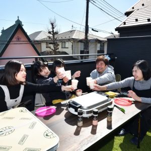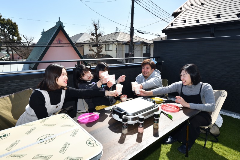 晴れの日の休日のお楽しみ バルコニーはBBQができるように広いスペースで計画