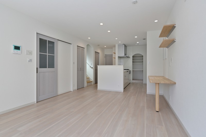ホワイト系にまとめられた建材で明るいLDK